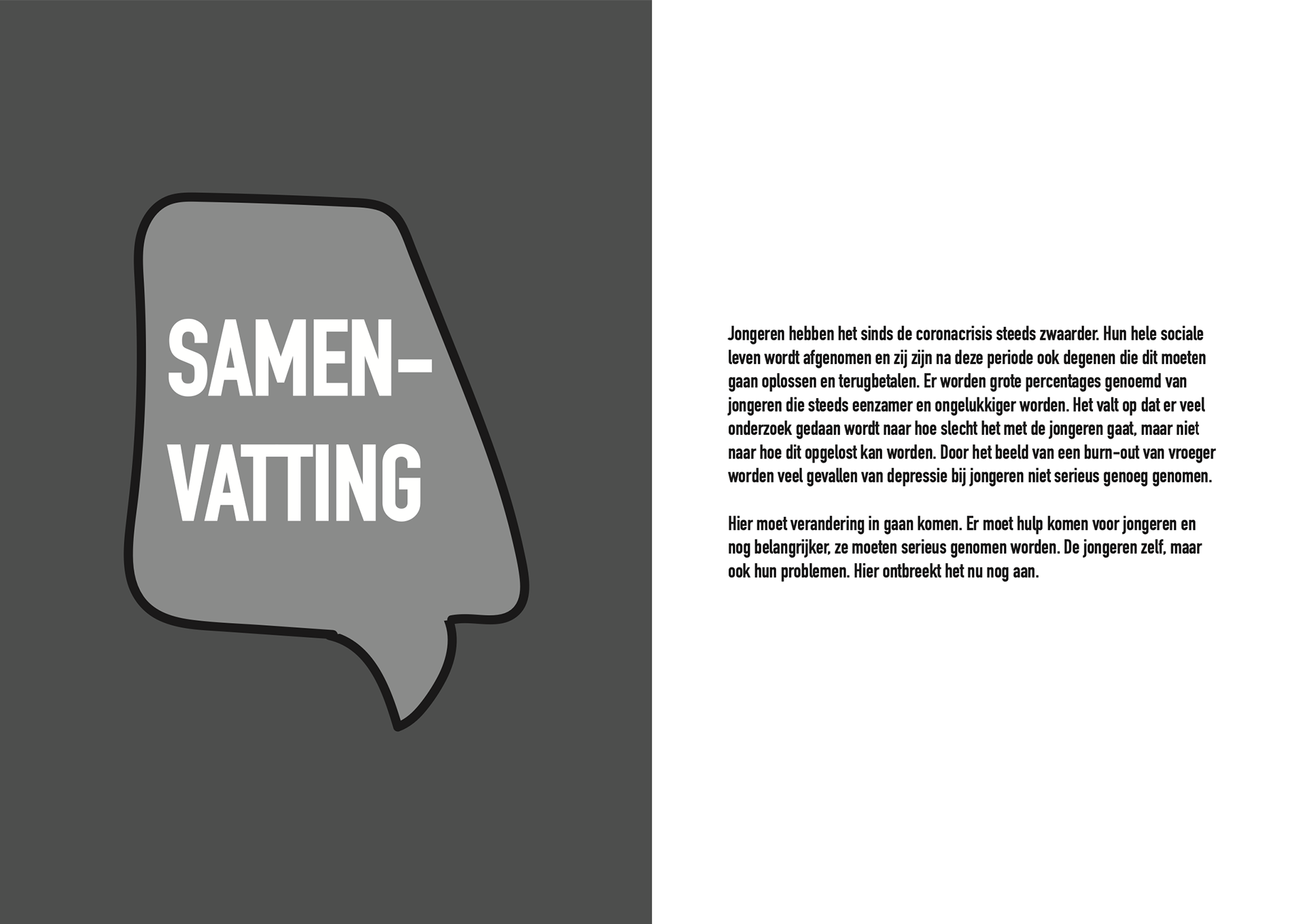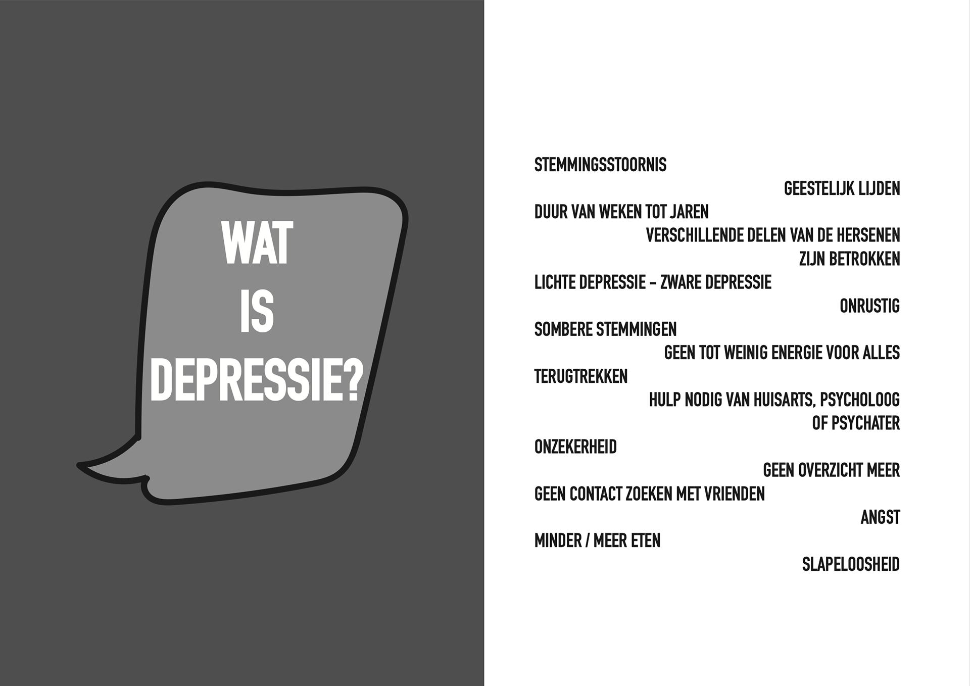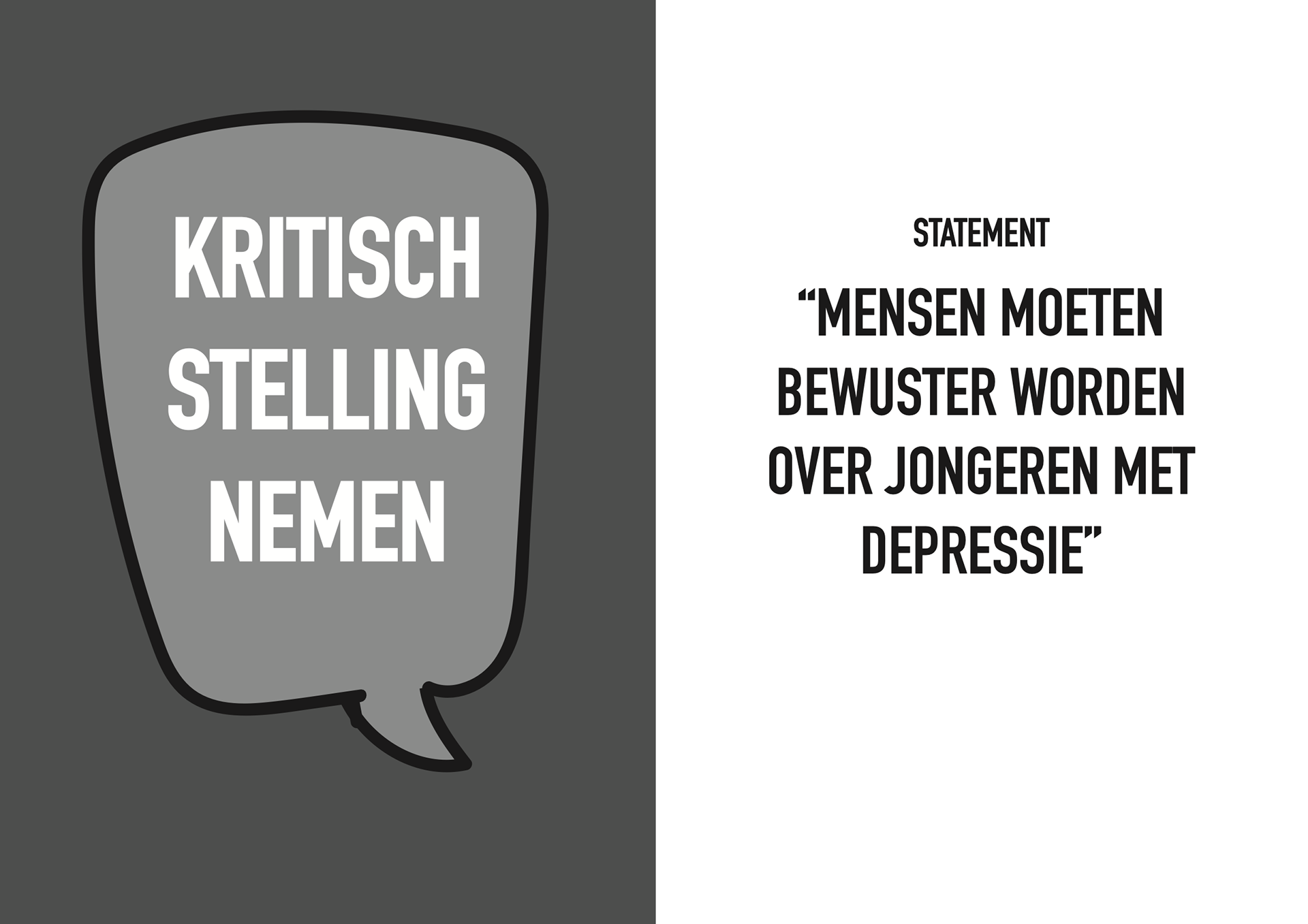 Depressie onder jongeren is iets wat steeds vaker speelt. Toch blijft het een onderwerp waar niet veel over gesproken wordt en er is nog weinig bewustzijn. Met deze opdracht was het de bedoeling om vanuit een opiniërend artikel een sprekend kernachtig beeld te ontwerpen.