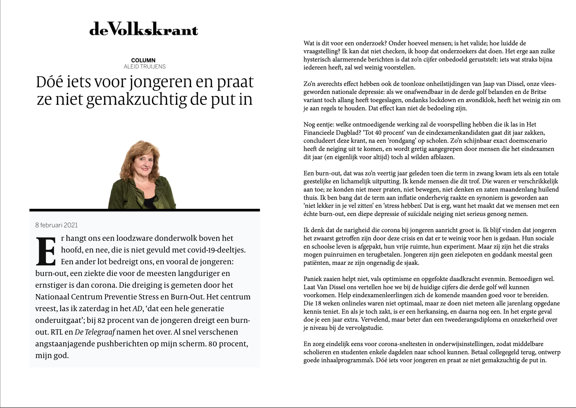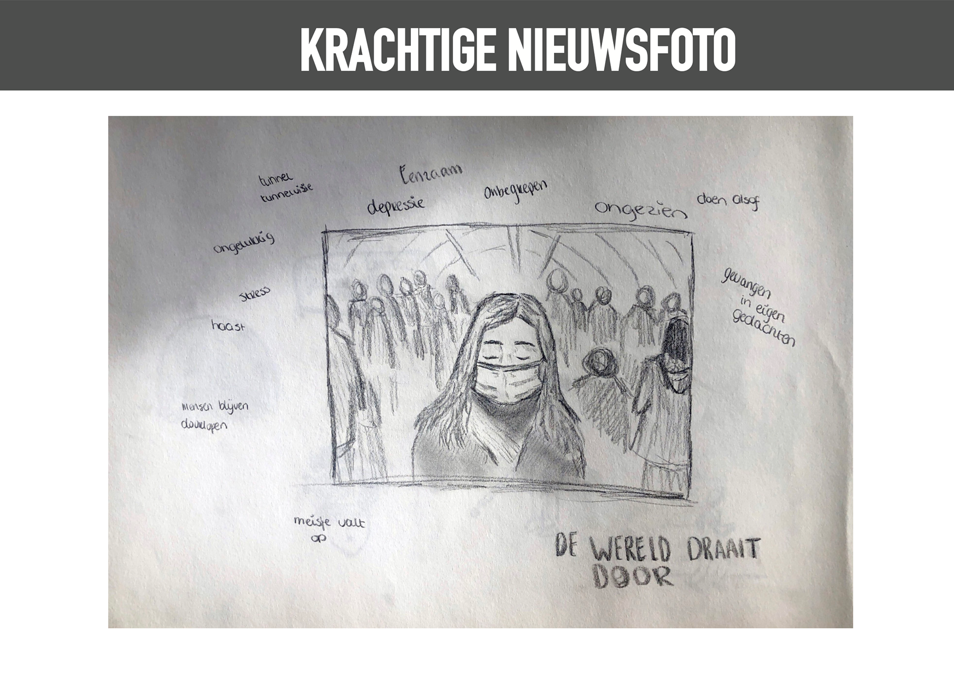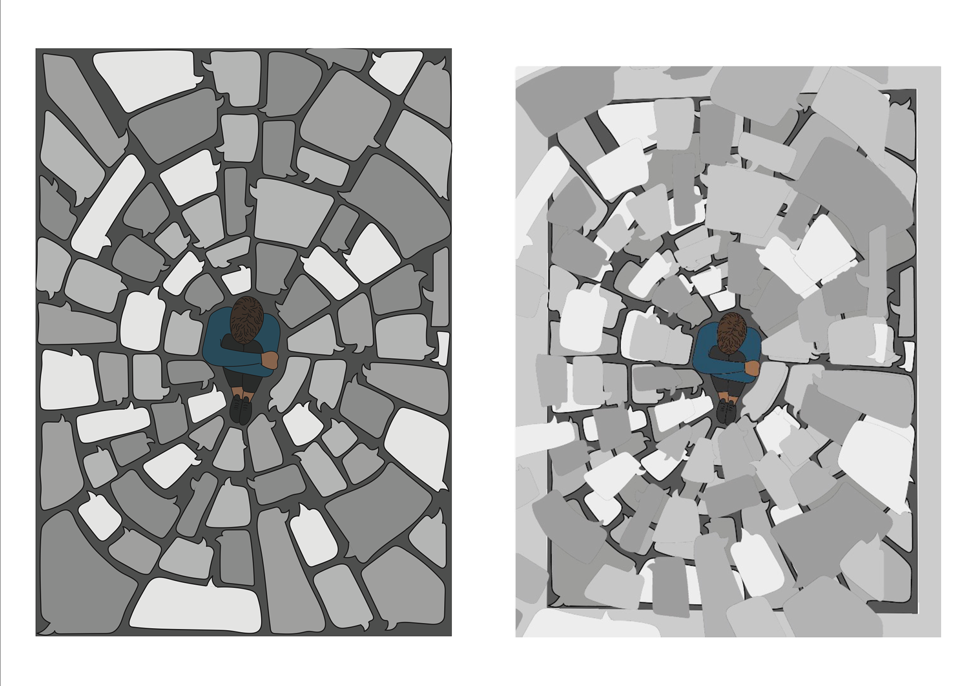 Depressie onder jongeren is iets wat steeds vaker speelt. Toch blijft het een onderwerp waar niet veel over gesproken wordt en er is nog weinig bewustzijn. Met deze opdracht was het de bedoeling om vanuit een opiniërend artikel een sprekend kernachtig beeld te ontwerpen.
