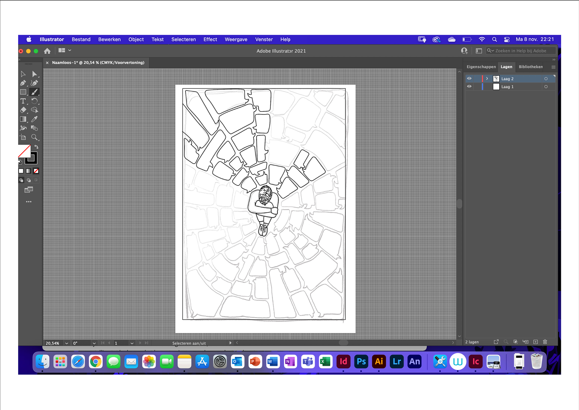 Hierbij heb ik gekozen voor de kant illustratie. Dit omdat illustratie me goed ligt, maar ook omdat ik vind dat je met illustratie veel kan vertellen. Ik heb mijn ontwerp gemaakt met Adobe Illustrator en heb hierna een extra Artivive laag toegevoegd om extra dimensie te geven aan de poster.
